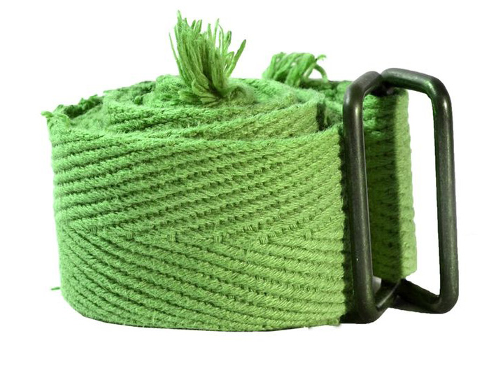 Стильный текстильный ремень, декорированный полоской и фирменным логотипом. Застежка на металлическую пряжку. Отличный вариант на каждый день.