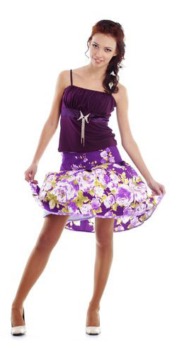 картинка Фиолетовое летнее платье с цветочным принтом и юбкой клёш от магазина Одежда+